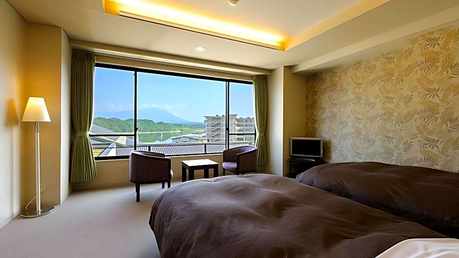 Features a lake view, tatami (woven-straw) flooring and traditional futon bedding.